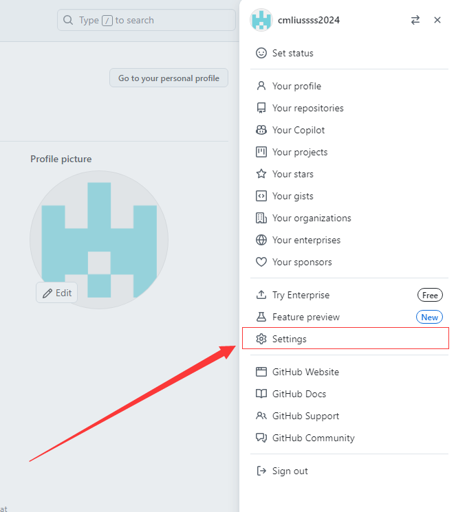 - 点击 Github 右上角头像,依次进入: