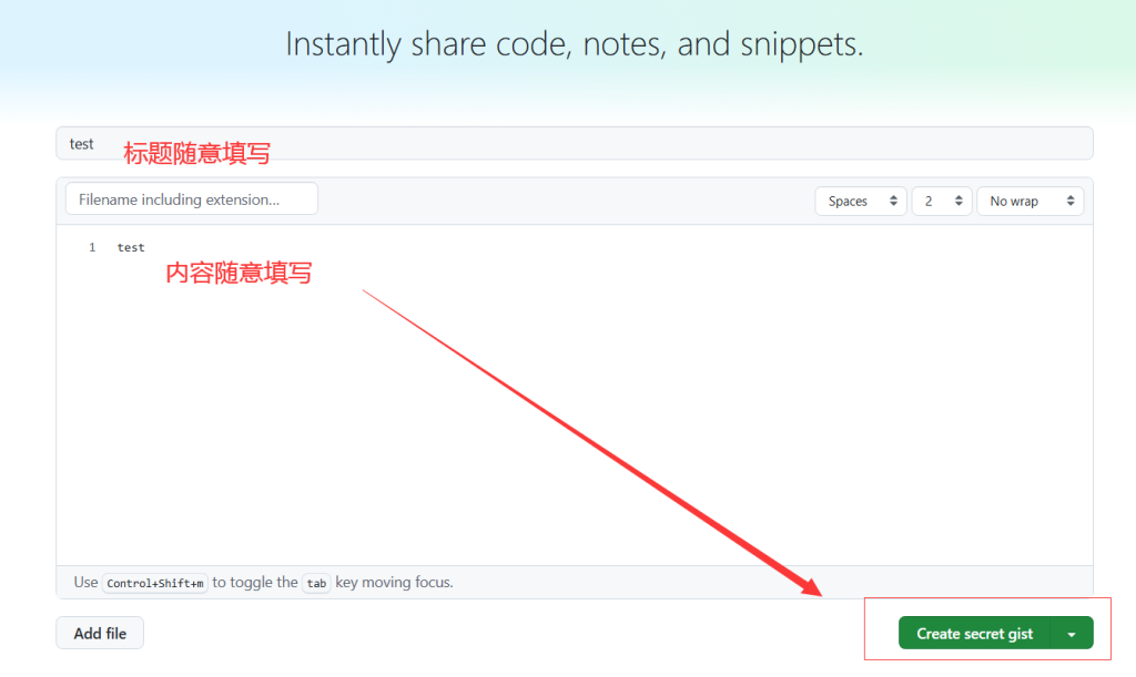 1.登录 gist.github.com,创建一个新的 Gist;