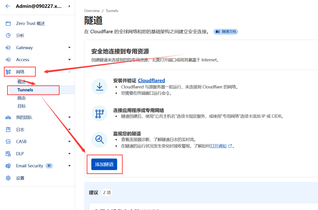 3.1 创建 CF 隧道,并获取隧道TOKEN
