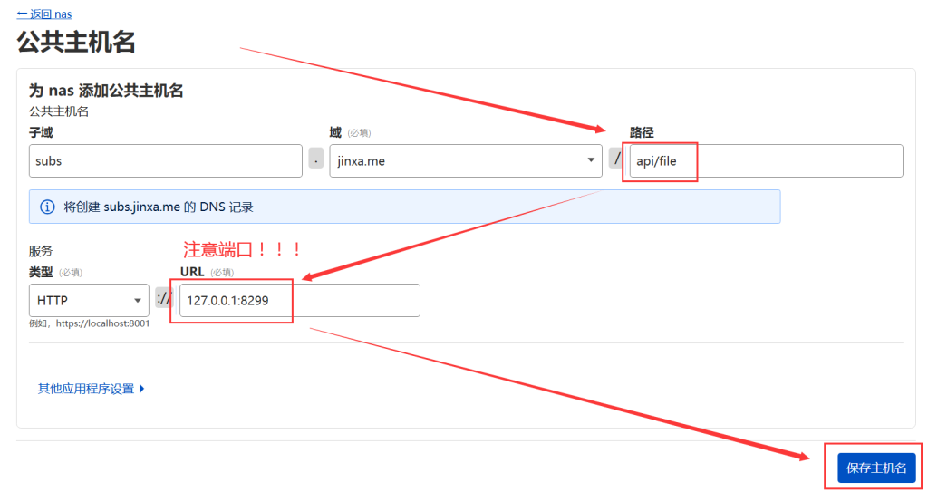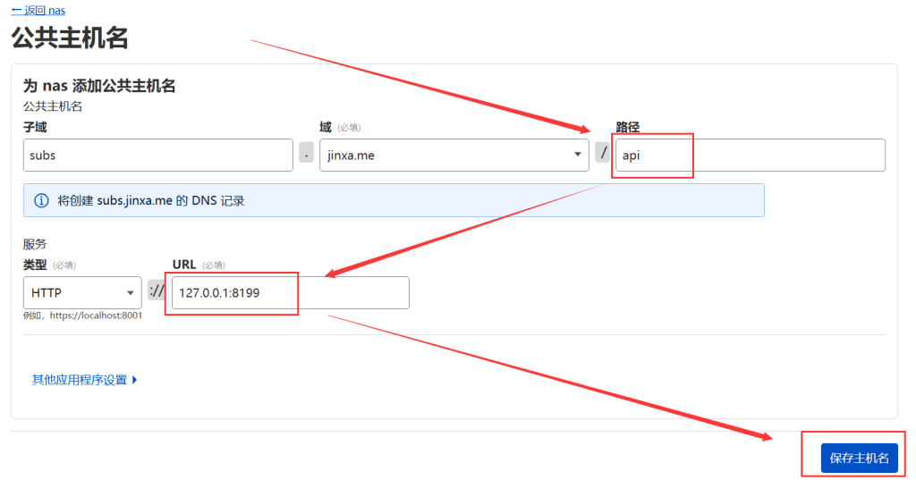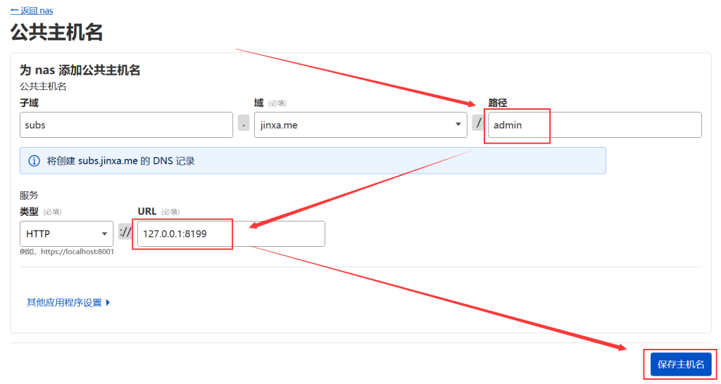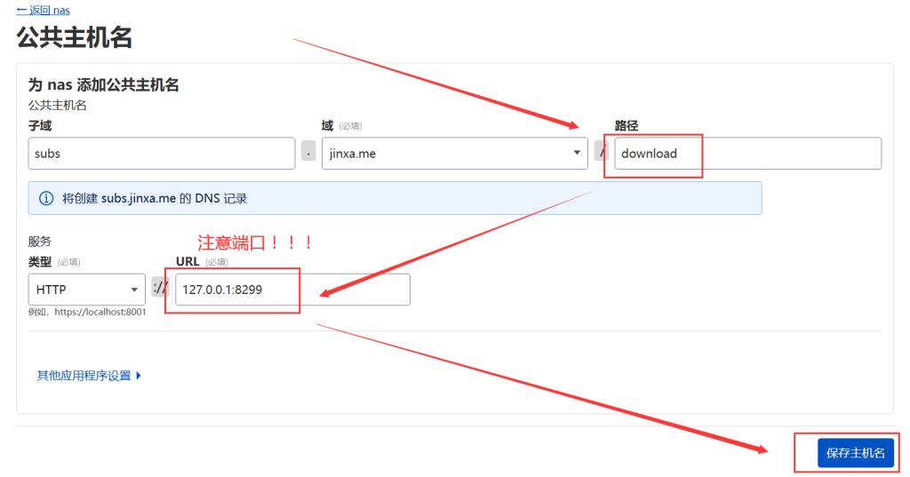 3.3 设置 CF 隧道的4个公共主机名